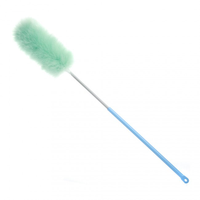 The Hi-Rise Dusting Pom is excellent at reaching ceilings and walls. Clean cobwebs and hard to reach moldings with a professional touch. Natural lambs wool offers exceptional dusting power. A light static charge, a web of fibers and natural oils work together to attract and hold dust until spun free.